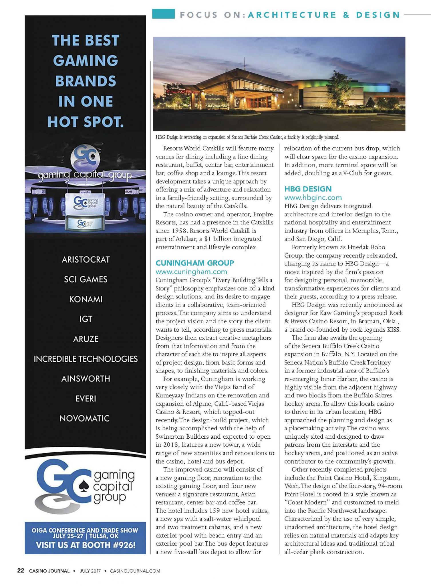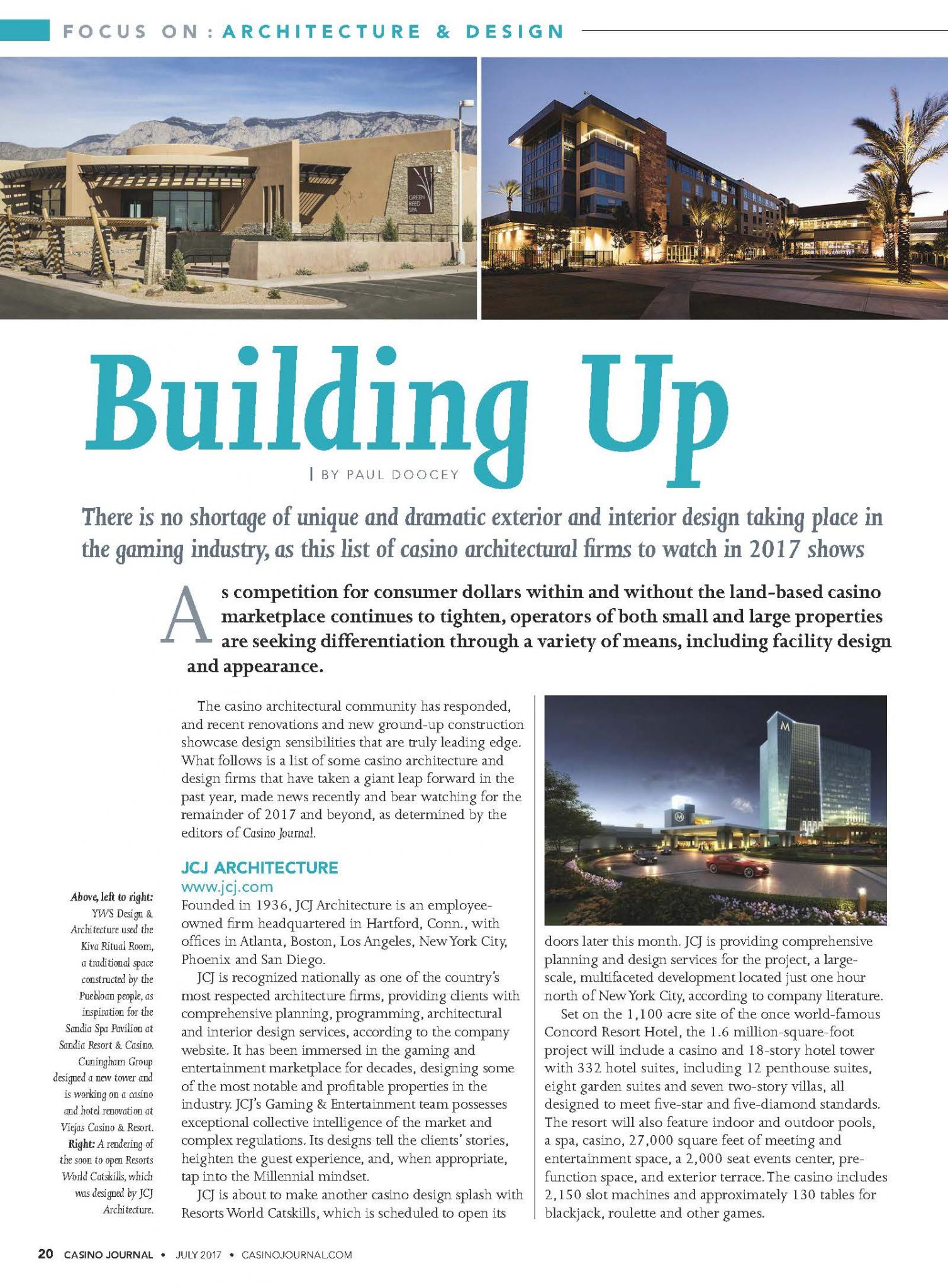 The casino architectural community has responded, and recent renovations and new ground-up construction showcase design sensibilities that are truly leading edge. What follows is a list of some casino architecture and design firms that have taken a giant leap forward in the past year, made news recently and bear watching for the remainder of 2017 and beyond, as determined by the editors of Casino Journal.