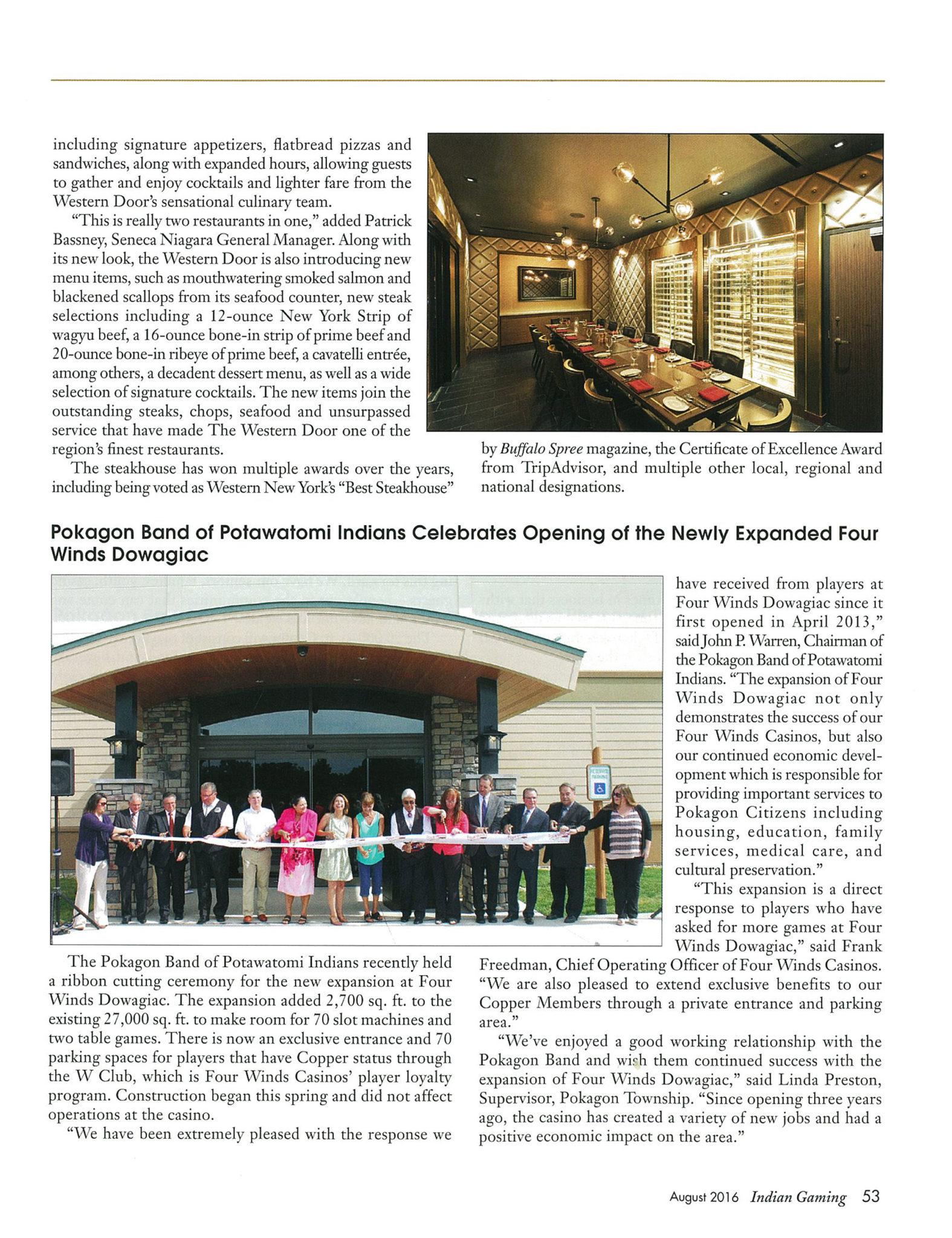 We are so proud of our client, the Pokagon Band of Potawatomi Indians, for the success and recent expansion of Four Winds Dowagiac. PrevNext
